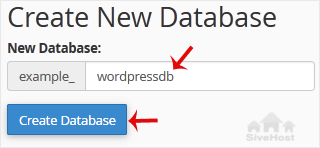 3. In the New Database field, enter a name for the new database you wish to create.