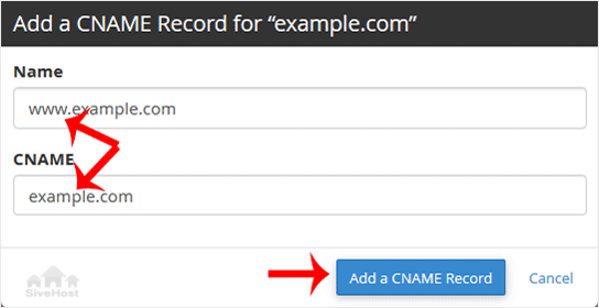 Name: Enter the name you wish to add, such as www, and the cPanel will automatically add a domain name like www.example.com.