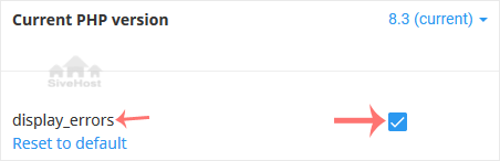 4. For enabling display_errors, checkmark it. For disabling it, uncheck it.